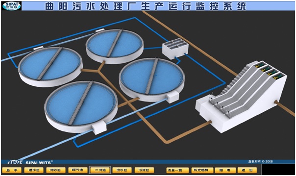 通過系統(tǒng)的無縫集成能夠把污水處理過程中的各種信息與反映空間位置的圖形信息、視頻信息的有機結(jié)合在一起。GIS系統(tǒng)、視頻系統(tǒng), 3D技術(shù)的綜合應(yīng)用,使用戶在計算機前操作如臨現(xiàn)場。 污水廠生產(chǎn)工藝流程